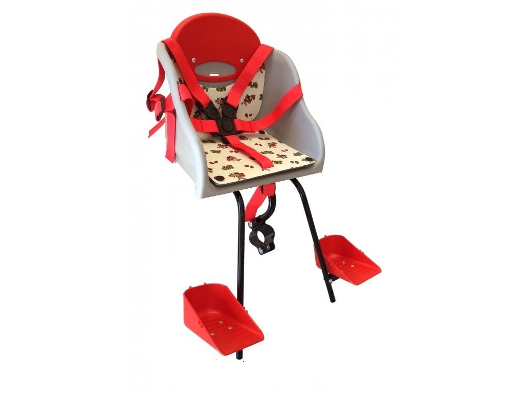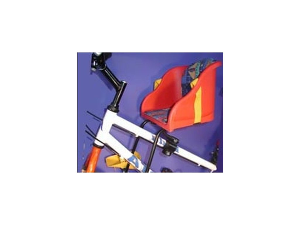 Pro upevnění na horní rámovou trubku silničních kol. Ocelová objímka se šrouby je chráněna plastovými krytkami. V sedačce je nenasáklivá měkká poduška.