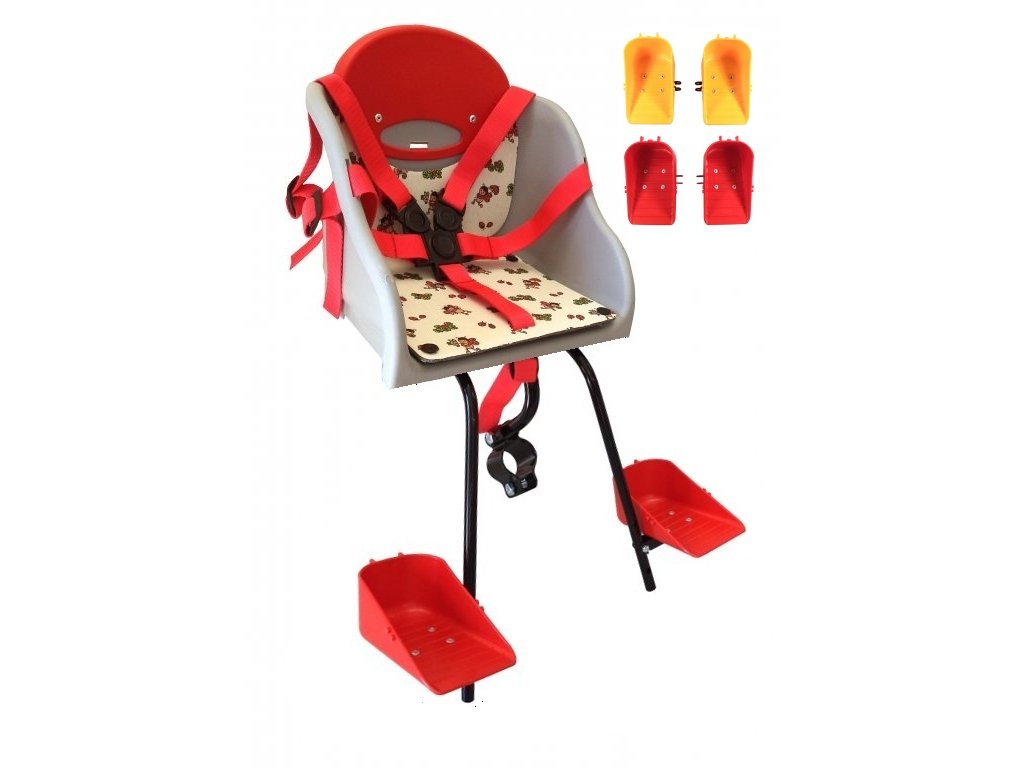 Dětská sedačka přední pro upnutí na vrchní šikmou rámovou trubku dámských silničních kol, kde úhel horní trubky s vodorovnou rovinou svírá 45 stupňů