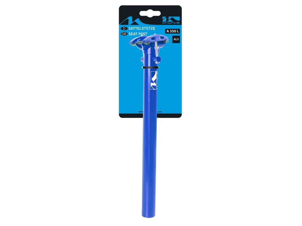 Sedlovka M-Wave Průměr: 27,2 mm Délka: 350 mm Materiál: Al Barva: modrá Hmotnost: 226 g Nastavitelný náklon Balení: originální karta M-Wave Určeno pro odborný servis