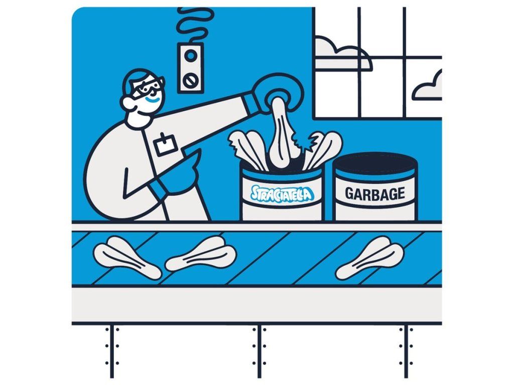 Stracciatella: inovativní technologie polstrování, která recykluje stará nebo vyřazená sedla. Tato sedla jsou rozdrcena na jemné granule a použita jako výplň do nových sedel. Stracciatella, rozemletá na granuláty a vstřikovaná do nové pěny, snižuje množství odpadu. Tuto novou výplň můžete vidět skrz průzory pod Royalgelem a svým vzhledem připomínájí právě legendární italskou zmrzlinu! Stejně jako slavnou italskou zmrzlinu, i Stracciatellu si můžete vychutnat při každé jízdě!
