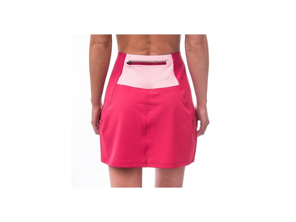 Cyklistická sukně bez cyklovložky vyrobená z lehkého a prodyšného materiálu, který zaručuje maximální volnost pohybu. Superrychlý odvod vlhkosti od pokožky a ochrana UPF25 proti UV záření. Ionty stříbra zamezují zápachu a tvoří trvalou antibakteriální ochranu. Sukně je zdobena odolným, decentním potiskem. Potěší zadní kapsa na zip, kam se pohodlně vejdou nezbytné drobnosti.