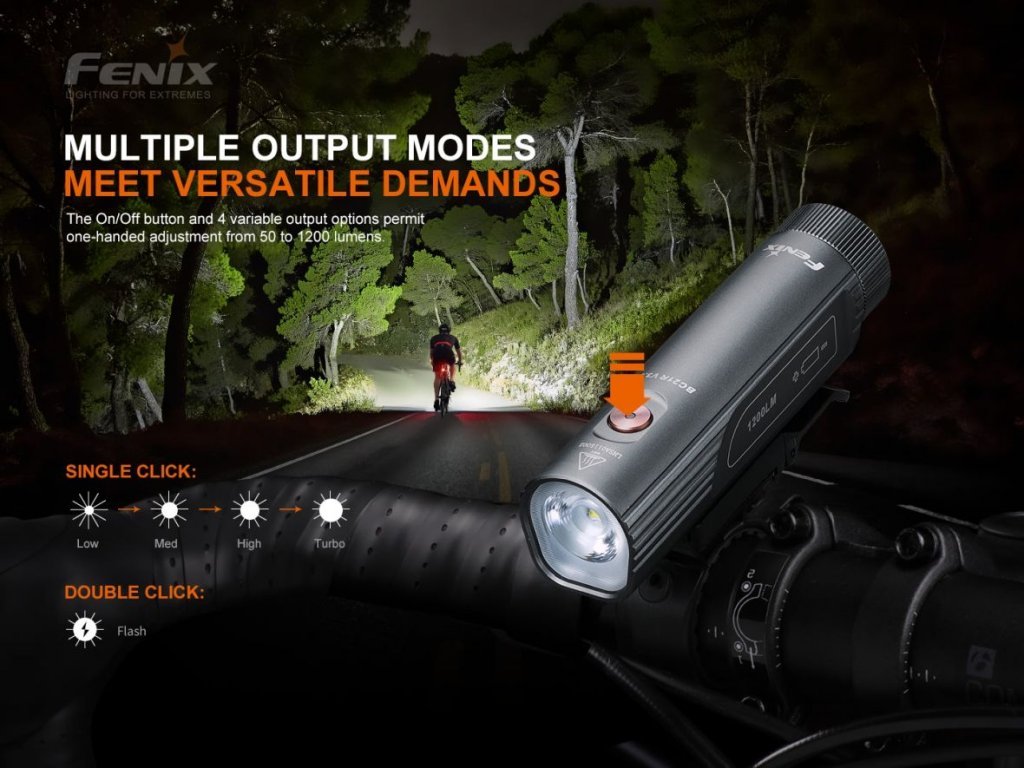- Ke svítilně lze dokoupit držák na řídítka na druhé kolo, držák Fenix ALD-08 na cyklistickou přilbu nebo plochá silniční aero řídítka, adaptér Fenix ALD-10 k uchycení světla do GoPro montáží.