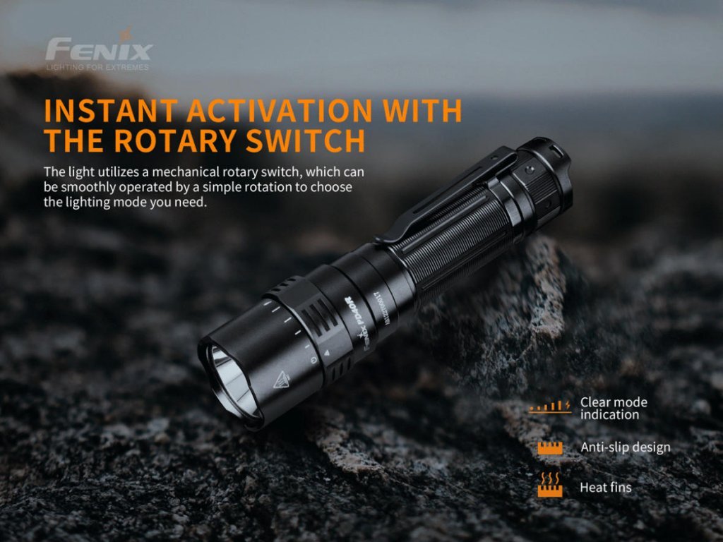 Nabíjecí svítilna Fenix PD40R V2.0 nabízí skvělý světelný výkon až 3000 lumenů (ANSI) a dosvit 405 metrů a to při kapesní velikosti s délkou necelých 14 centimetrů. Součástí balení je i nabíjecí 21700 Li-ion akumulátor s kapacitou 5000 mAh, který se nabíjí přímo ve svítilně přes moderní USB-C konektor. Svítilna Fenix PD40R V2.0 disponuje pěti různými režimy svícení, které se jednoduše přepínají pomocí otočného kroužku na hlavě svítilny. Na nejnižší režim dokáže svítit až 88 hodin, což jsou téměř 4 dny svícení v kuse. Nechybí ani stroboskopické záblesky pro krizové situace.