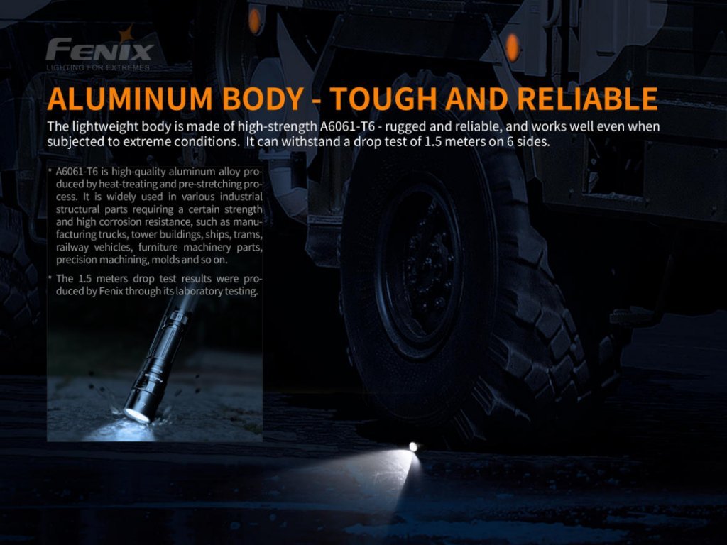 - Ke svítilně je přiložena šňůrka na zápěstí, pouzdro na opasek, akumulátor Fenix 21700 s kapacitou 5000 mAh, USB-C kabel a náhradní o-kroužek.