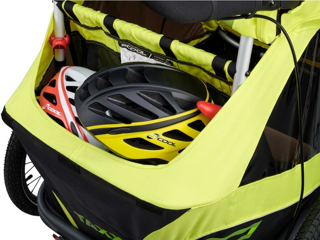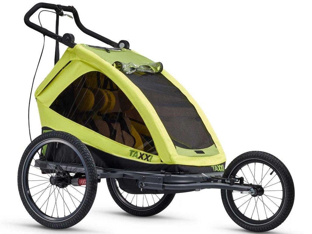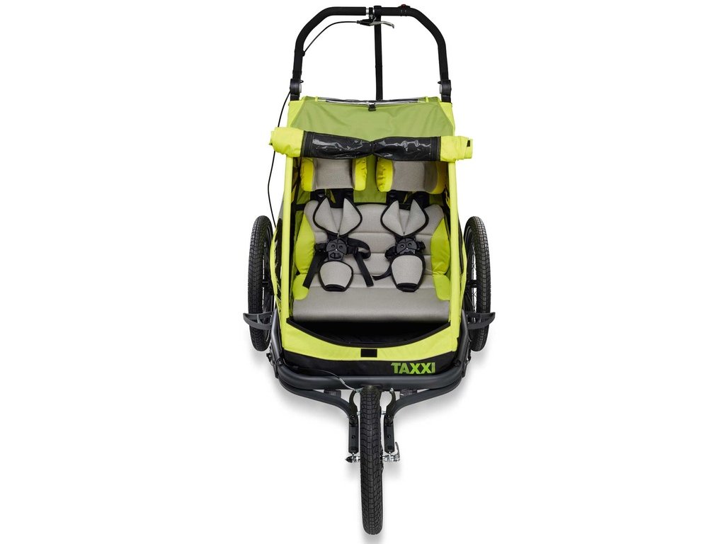 Cyklovozík TaXXi Elite 2 určený pro 2 děti se širokospektrálním zaměřením je vhodný pro druhy sportu jako je cyklistika, běh, in-line bruslení nebo i procházky a turistika. V balení cyklovozíku naleznete – nastavitelnou ruční brzdu, set na kočárek, kolo a běh. Cyklovozík má precizní pružení, které zajistí komfortní cestování a dokáže eliminovat nerovnosti na cestách a mimo cest. Díky velkým bočním oknům, může dítě vidět okolní svět během jízdy. Komfortní sezení s 5 bodovým magnetickým pásovým systémem zajišťuje, aby bylo děťátko v bezpečí během celé jízdy. Snadné čištění zajišťuje odnímatelná rohož.