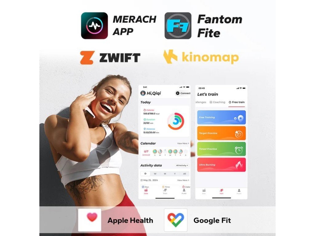 Merach, Kinomap, Zwift, Apple Health, Google Fit, Fanton Fite (od Merach).