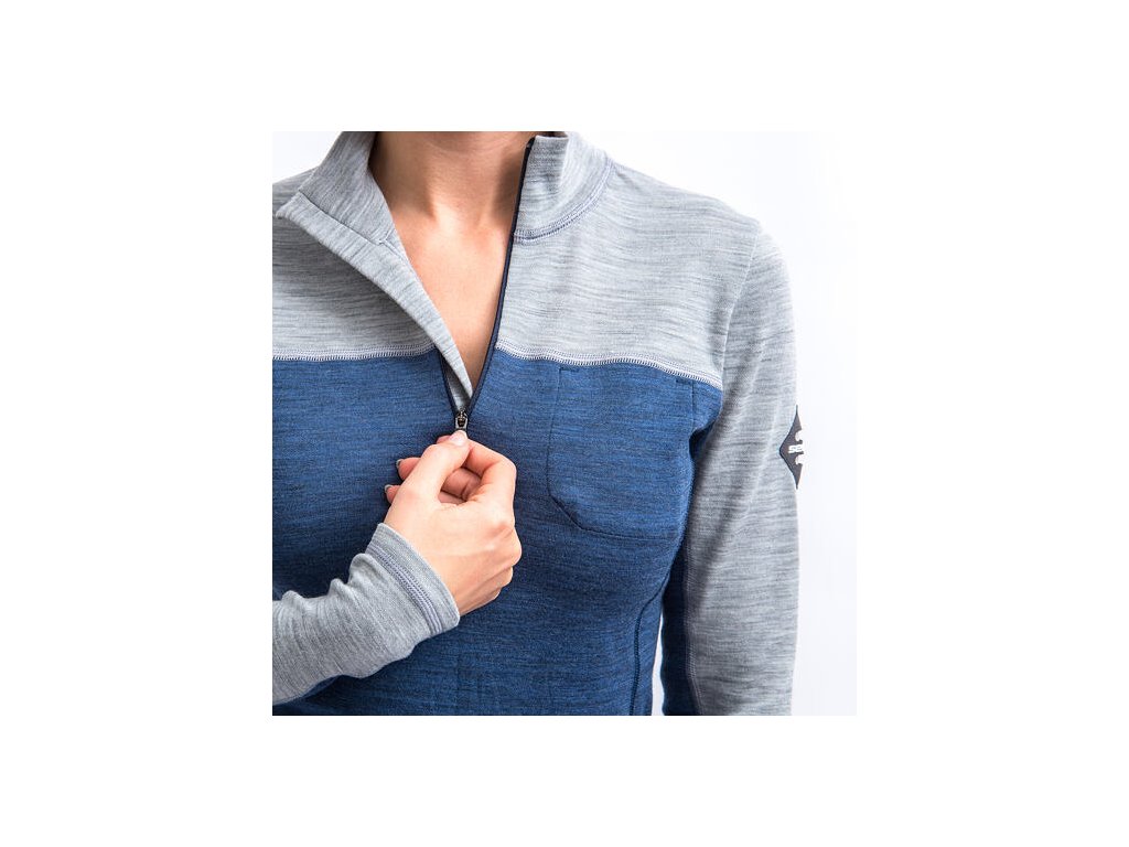 triko dámské dlouhé SENSOR BOLD ZIP merino modro/šedé