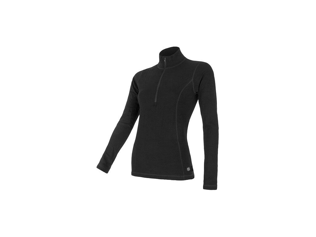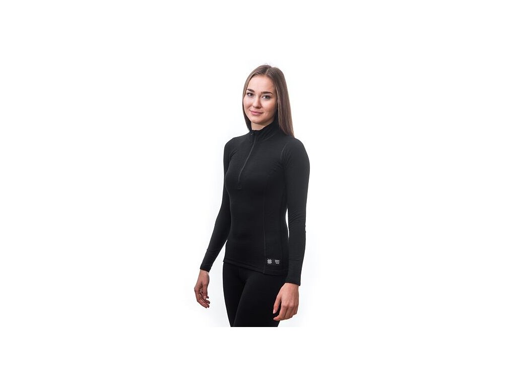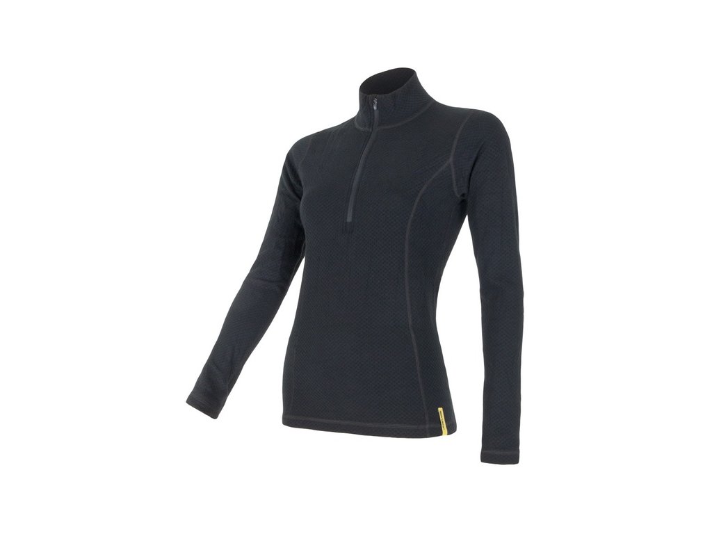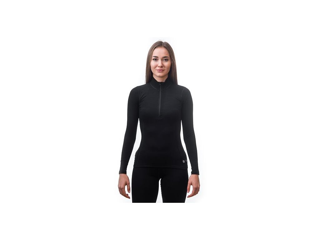 triko dlouhé dámské SENSOR MERINO DOUBLE FACE zip černé