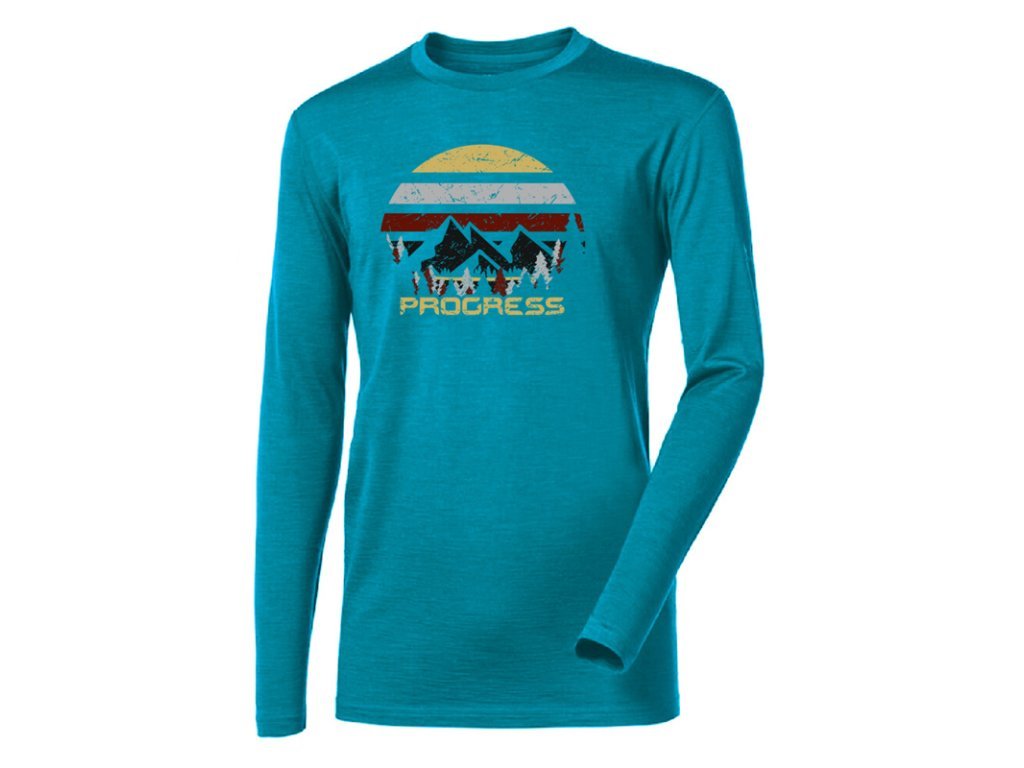 triko dlouhé pánské Progress LOKI LANDSCAPE merino zelený melír