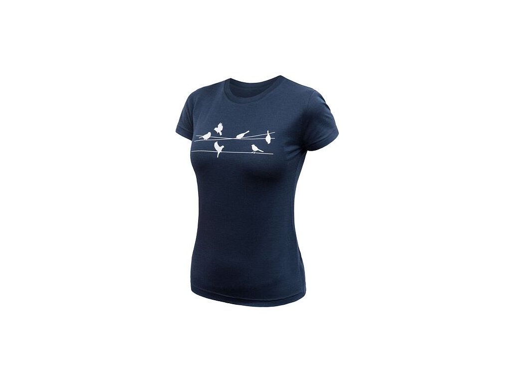 triko krátké dámské SENSOR MERINO ACTIVE SONGBIRDS tm. modré