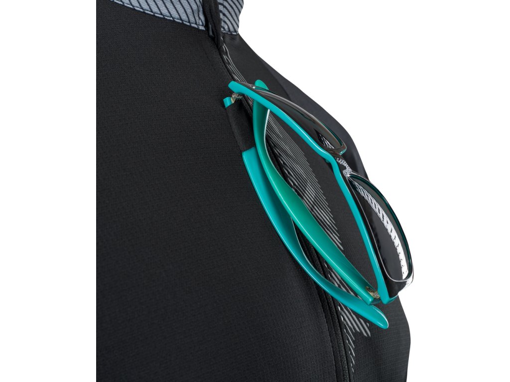 dlouhý hlavní zip, kapsička na zip na zadním díle, reflexní prvky