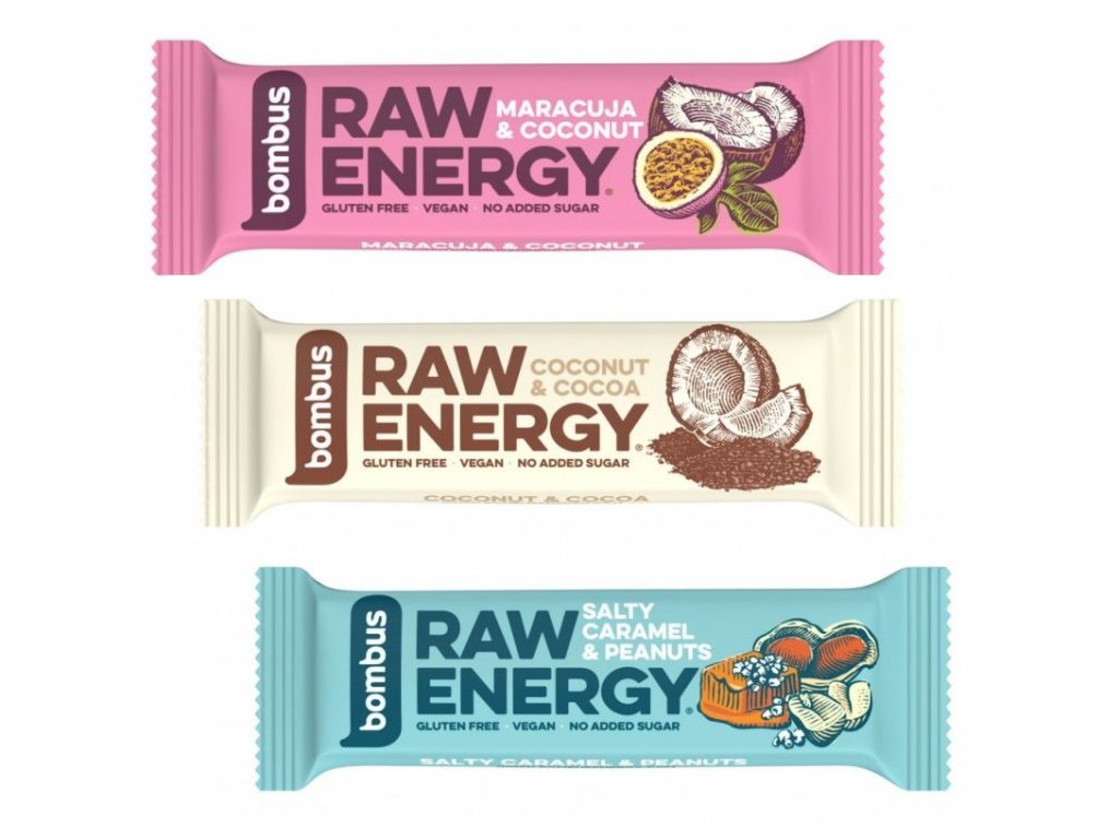 tyčinka Bombus Raw Energy multipack 3x50g maracuja+kokos+sl. karamel