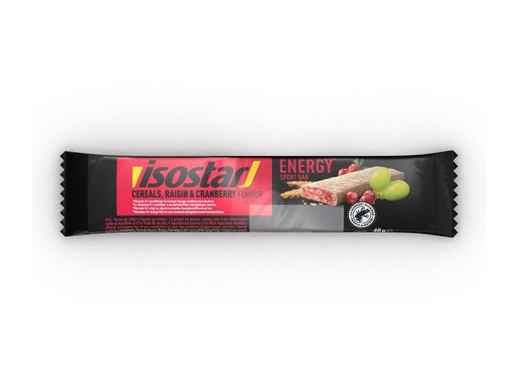 Menší pocit únavy. Efektivní zdroj energie. Skvělá chuť. Isostar ENERGY SPORT BAR je doplňkem stravy, který vám dodá energii před tréninkem i v jeho průběhu. Jednoduché a složené sacharidy postupně pokryjí vaši potřebu v průběhu celého tréninku. Navíc 30 % cereálií a 12 % ovoce doplňuje účinný zdroj antioxidantů – vitamín C a PP. Proti únavě, ale také jako podpora správné funkce svalů působí vitamíny skupiny B. Isostar ENERGY SPORT BAR s příchutí brusinek si oblíbíte pro okamžitý efekt i chuť.