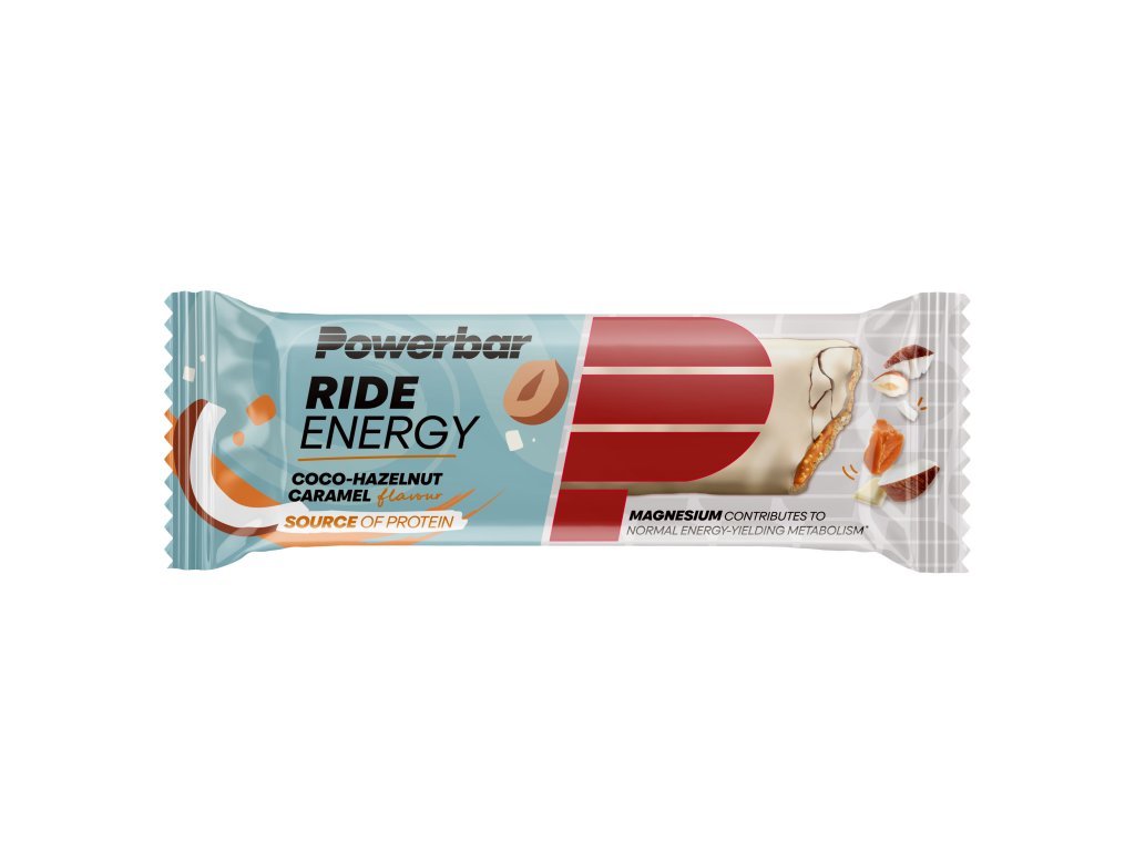 PowerBar Ride Energy je ideální všestranná svačinka pro každého aktivně žijícího člověka nebo sportovce. Nabízí „vše v jednom“ pro podporu vašeho těla a zvládnutí různých denních aktivit. Obsahuje sacharidy, vysoký podíl prémiového proteinu pro podporu svalů a hořčík. Je tak ideálním spojením aktivně žijícími vyhledávaných a pro sportovce žádoucích ingrediencí. Příchuť oříšků, čokolády a kokosu ve spojení s karamelem je neodolatelná.