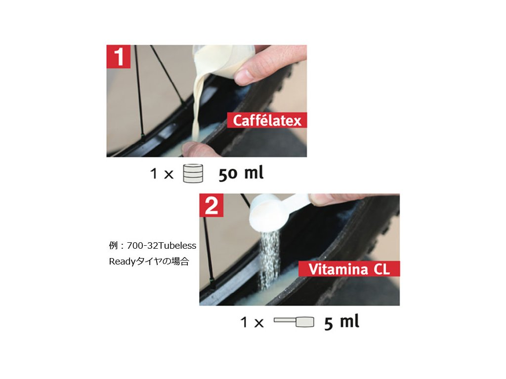 Používá se přímo pro aplikaci do pneumatiky v kombinaci s Caffelatex tmelem, částečky Vitamina CL pomáhají při utěsňování větších průrazů.