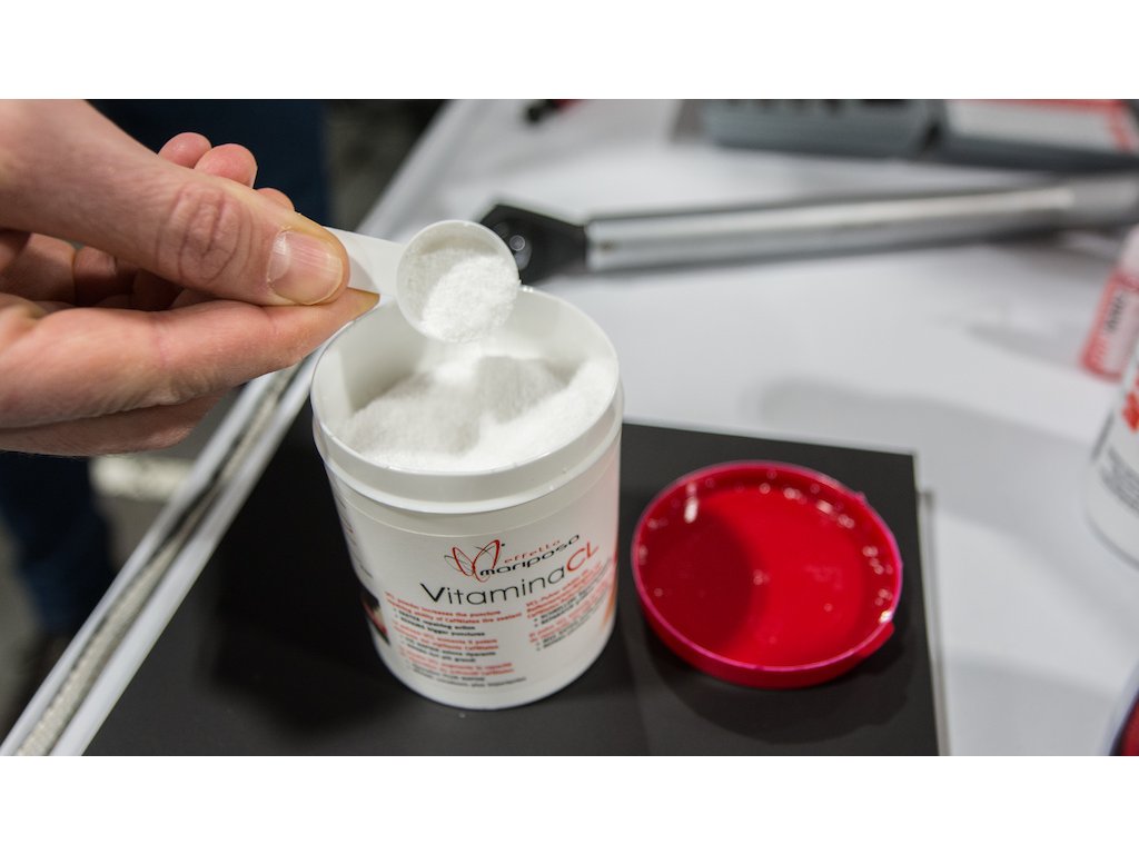 Vitamina CL je polymerní prášek s velmi přesnou velikostí a hustotou částic, který se snadno mísí s Caffelatex tmelem.