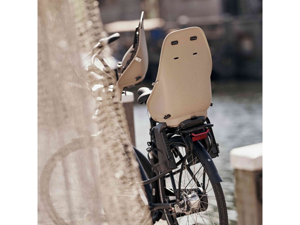 Zadní sedačka na kolo s elegantním a funkčním tvarem představuje to nejlepší z holandského designu. Měkké polstrování na ramenou, vodoodpudivý polštář sedáku pro vynikající pohodlí za jakéhokoli počasí. Tyto detaily dodávají sedadlům jedinečný nádech s odkazem na japonské kořeny Urban Iki.