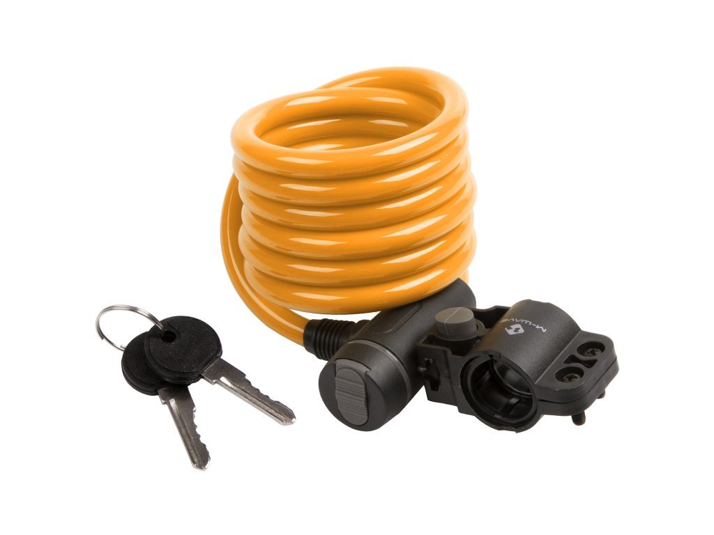 Průměr lanka: 10 mm Délka řetězu: 1800 mm Držák k uchycení na sedlovku nebo k rámu Ochranný kryt Barva: oranžová transparentní Balení obsahuje 2 klíče Balení: karta M-Wave