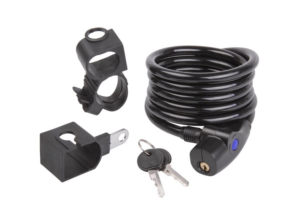 Průměr lanka: 10 mm Délka řetězu: 1800 mm Držák k uchycení na sedlovku nebo k rámu Ochranný kryt Barva: černá Balení obsahuje 2 klíče Balení: servisní v sáčku