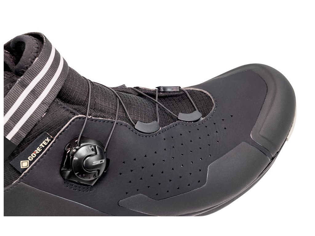 Tyto boty jsou vyrobeny s důrazem na odolnost a dlouhou životnost, přičemž kombinují moderní materiály s technologií Gore-Tex EPE pro optimální tepelnou regulaci a odolnost vůči vodě. Inovativní zapínací systém zajišťuje pevné a bezpečné obepnutí nohy, zatímco zpevněná špička chrání proti kamenům a nárazům. Tužší podrážka R2CC se stupněm 9 efektivně přenáší výkon na pedály a spolu s vysokou stabilizací kotníku zajišťuje dokonalou kontrolu nad kolem i v zimních podmínkách.